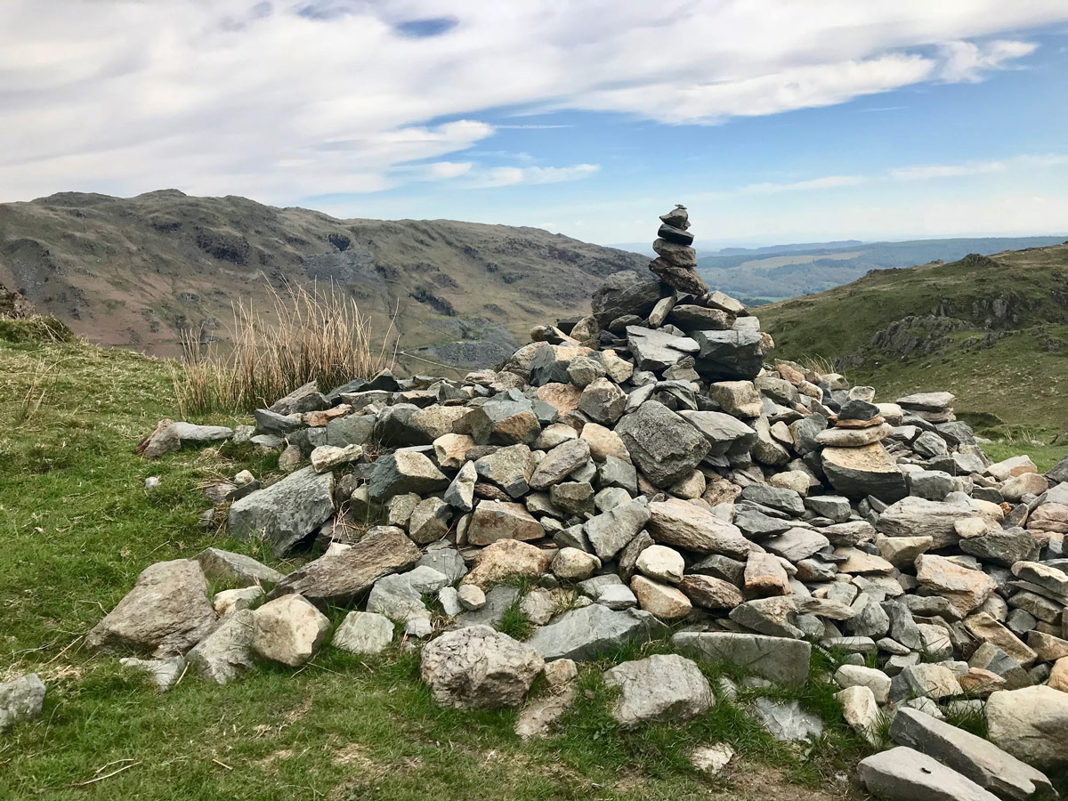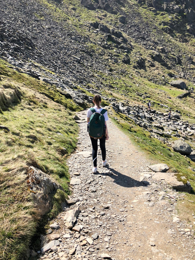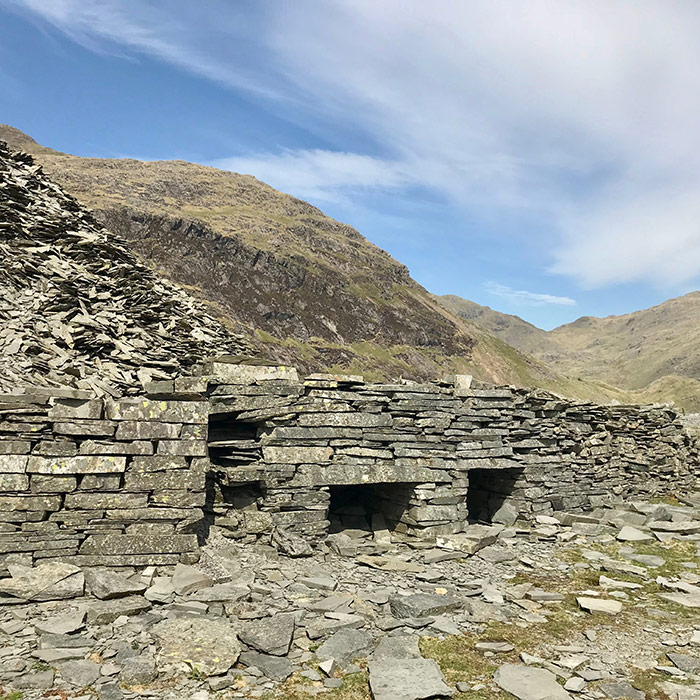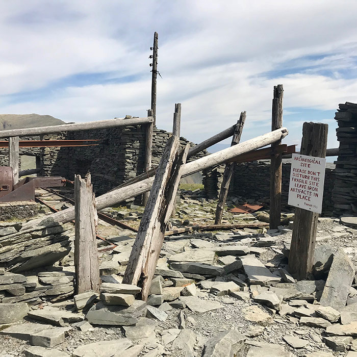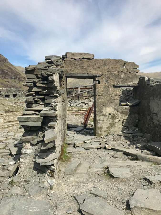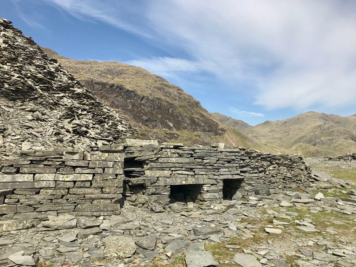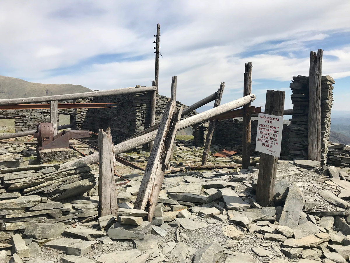 As you continually walk up there are remains of what used to be a slate quarry that ran mid way from the top along with discarded tracks and old buildings.