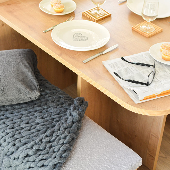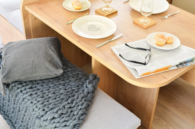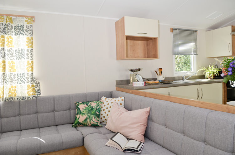 If you’re a young family then the Grasmere is ideal with the amount of space the living room has to offer, perfect for kids getting stuck into playing or in other words making mess. If you’re an older family then adding an extra large coffee table and cosy tuffets to pop your feet onto could optimise the space. The neutral L shaped seating has clever storage underneath their cushions, so taking up blankets and festive decorations to store for the Christmas winter months would be ideal so you can spend a weekend in your holiday home at any time of the year!