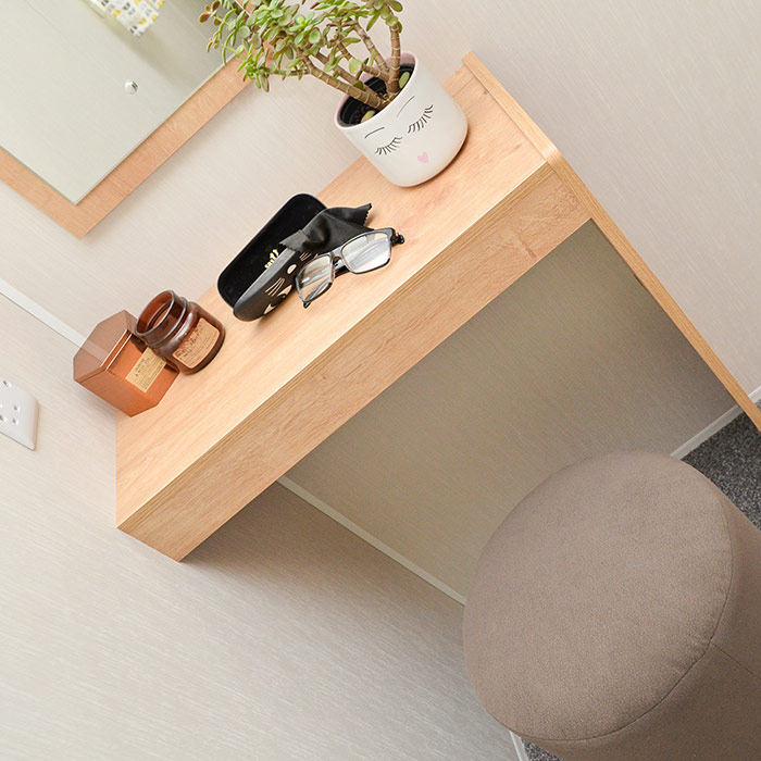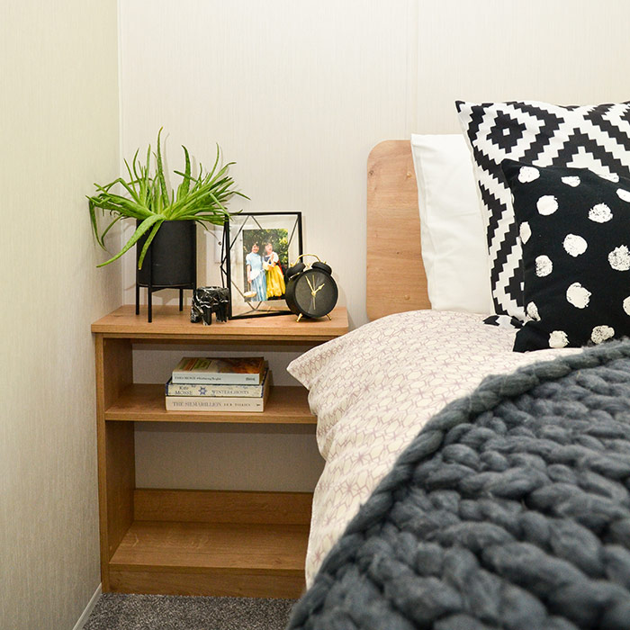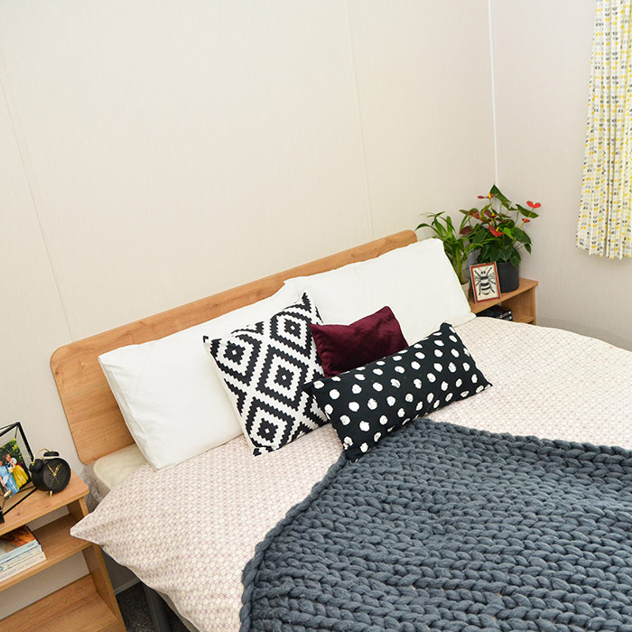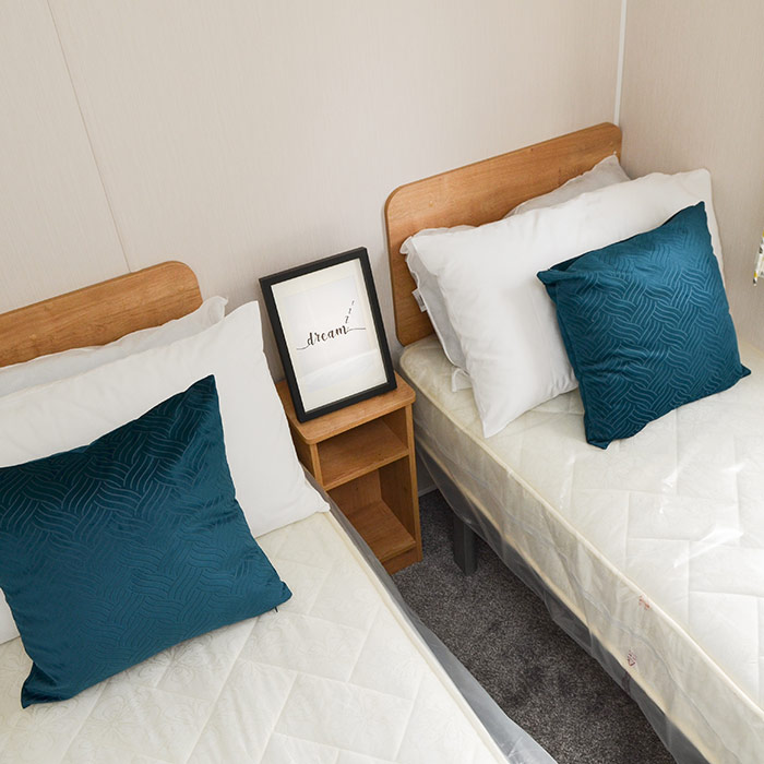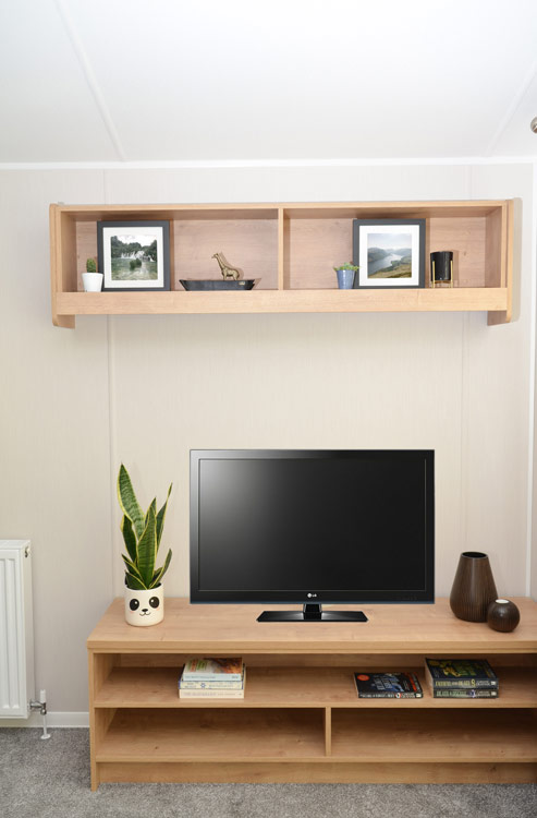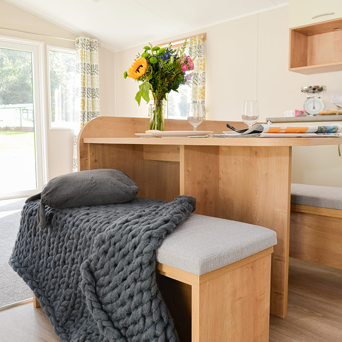 The spacious bathroom comes with a clean modern white suite complete with an enclosed shower. Liven the room up with some bursts of greenery to help you fully relax and unwind. There is a theme of wooden oak furniture throughout the Grasmere adding to the tactile essence of being in the countryside. Oak is also easy to pair with any colour theme so you can style your holiday home to whatever your taste.